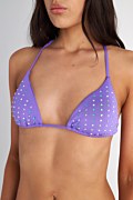 Triangle swimwear bikini top with strass embellishments at the front. Ties at neck and back. Light padding with removable pads. Combine it with its bikini bottom 25802761 for a total look.