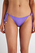 Low rise bikini slip with strass embellshments at the front. Τies at sides. Moderate back coverage. Combine it with its bikini top 25801760 for a total look.