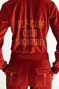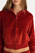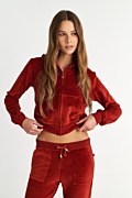 Long sleeved, hooded velour jacket adorned with strass at the back side. Patch pockets on the front, double hoodie, elastic bands in both waist and sleeves, iconic heart zipper and heart stoppers. Relaxed fit. Suitable for all day. Combine it with the pants 25831000 for a perfect outfit. Model wears size S: Height: 1,75cm, Bust: 79cm, Waist: 60cm, Hips: 90cm.