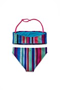 Striped swimwear bikini set for girls. Adjustable strap and the brief is fully back coverage.