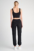 This monochrome Sugarfree structured terry pants combines comfort with style! Wear your favorite sneakers with this terry pants. Low rise, side pockets on the front, snap-flap pockets on back, straight leg with elastic cuff hem and banded drawstring waist in white color for contrast. Relaxed fit. Combine it with the jacket 23813002 for a more complete look! Model wears size S: Height: 1,78cm, Bust: 83cm, Waist: 61cm, Hips: 90cm.