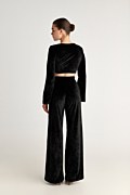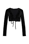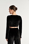 Cropped top crafted from super soft velour fabric. Features a deep V-neckline, a decorative front ring with a cut-out detail and adjustable drawstring ties made from the same fabric that create a gently draped effect across the bust and an iconic SF logo on the side. Long flared sleeves. Slim fit. Combine it with the pants 25831173 for a perfect look. Model wears size S: Height: 1,74cm, Bust: 86cm, Waist: 66cm, Hips: 89cm.