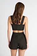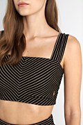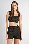 Super soft velour cropped top with gold stripes throughout the fabric. Features wide straps, a straight neckline and an iconic SF logo on the side. Slim fit. Very cropped length. Combine it with shorts 25830217 for a perfect outfit. Model wears size S: Height: 1,77cm, Bust: 83cm, Waist: 62cm, Hips: 89cm.