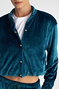 Long-sleeved bomber jacket made from super soft velour fabric. Featuring a high collar. Front welt pockets. Hem finished with elasticated drawstring and stoppers. Front snap buttons closure. Combine it with the pants 25831085 for a perfect look. Model wears size S: Height: 1,78cm, Bust: 83cm, Waist: 60cm, Hips: 91cm.