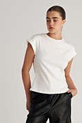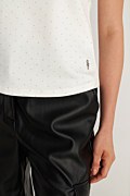 Monochrome t-shirt with sparkling strass embellishments on the front, adding a touch of glam to any outfit. Features a scoop neckline and short sleeves with turn-up cuffs. Regular fit. Suitable for wearing from morning to night! Model wears size S: Height: 1,74cm, Bust: 86cm, Waist: 66cm, Hips: 89cm.