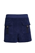 Monochrome terry shorts for teens. Patch pockets on the front, snap-flap pockets on back, short length and banded drawstring waist. Logo details at the front drawstring. Regular fit. Model wears size PXS, height: 1,64cm.