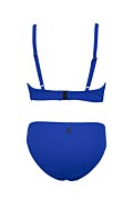 Teens swimwear bikini set in monochrome style made of ribbed fabric. Light padding with removable pads, adjustable shoulder straps and clasp at the back side. The brief is fully back coverage.