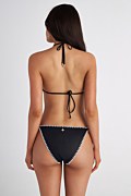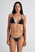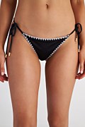 Low rise bikini slip with crochet zigzag details stitching along the edges. Ties at sides. Moderate back coverage. Combine it with the matching bikini top 25801750 for a total look.