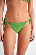 Low rise bikini slip with decorative rings. Allover glitter details and ties at sides. Moderate back coverage. For a total look, combine it with its bikini top 23801090.