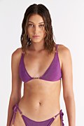 Swimwear bikini top in triangle style with decorative rings. Allover glitter details. Ties at neck and back. Light padding with removable pads. Combine it with its bikini bottom 25802725 for a total look.