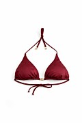 Elevate your summer style with this elegant triangle bikini top in a bold red shade. The thin straps tie at the neck and back, offering femininity and adjustable comfort. A subtle metallic detail at the center adds a refined, luxurious touch, while the back ties ensure a perfect, body-adapted fit. Ideal for mix & match beach or poolside looks. Pair it with the matching bikini bottom 26802039 and gold accessories for a complete summer outfit.