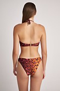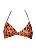 Triangle bikini top with twist detail at the front side. Allover leopard print. Light padding with removable pads. Ties at the neck and it has clasp at the back. Suitable for cup D. Pair this stunning top with our matching bikini bottoms 24802525 for a complete and cohesive look.