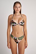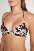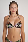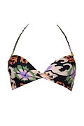 Triangle bikini top with twist detail at the front side. Allover multicolor print. Light padding with removable pads. Ties at the neck and it has clasp at the back. Suitable for cup D. Pair this stunning top with our matching bikini bottoms 24802550 for a complete and cohesive look.