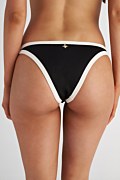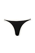 Two-tone styled brazilian bikini bottom with contrasting white binding along the edges. Features a thin elastic waistband and low back coverage. Combine it with the matching bikini top 25801768 for a complete and stylish beach look.