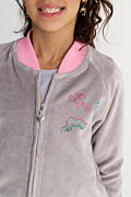 Two-tone styled velour set for girls adorned with colorful strass. Jacket with collar and sparkling colorful strass embellishment on the front. Features elastic ribbed bands in both waist and sleeves and a bold, eye-catching rainbow zipper closure. Heart zipper and heart stoppers. Mini skirt in straight-fit with an elastic waistband for a firm fit. Regular fit. This set ensures our girls have the perfect outfit every time they wear it! Model wears size 8, height: 1,27cm.