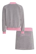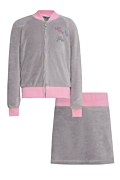 TWO-TONE STYLED VELOUR JACKET/SKIRT SET FOR GIRLS WITH STRASS EMBELLISHMENT AND RAINBOW ZIPPER