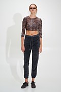 This monochrome straight leg Sugarfree velour pants combines comfort with style! Wear your favorite sneakers with this velour pants in basic colors. Low rise, side pockets on the front, snap-flap pockets on back, straight leg with elastic cuff hem and banded drawstring waist. Logo details at the front drawstring. Relaxed fit. Model wears size S: Height: 1,81cm, Bust: 88cm, Waist: 62cm, Hips: 91cm.