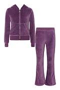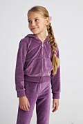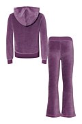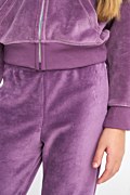VELOUR TRACK SET FOR GIRLS WITH STRASS EMBELLISHED ON THE HOOD AND RAINBOW ZIPPER