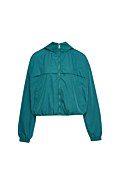 Sports waterproof hoodie jacket in monochrome style. Features a high collar, long sleeves, side pockets and banded cuffs in both waist and sleeves. Front zipper closure. Relaxed fit. Model wears size S: Height: 1,78cm, Bust: 88cm, Waist: 63cm, Hips:91cm.