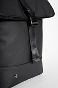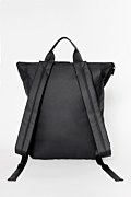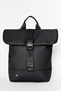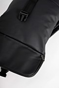 Waterproof backpack with a top carry handle. Features a single main compartment, a separate laptop sleeve, and a Sugarfree logo on the front. The double roll-top closure with zipper and buckle strap secures the backpack while enhancing its minimal look. Dimensions: Length 11 x Width 37 x Height 40 cm.