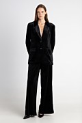 Monochrome velour mid-waist pants with a wide-leg fit that offer a bold and stylish look is a must-have staple for any wardrobe. Features belt loops and a concealed side zipper along the seam. Suitable for all day wear! Combine it with the blazer 25833147 for a perfect look. Model wears size S: Height: 1,77cm, Bust: 83cm, Waist: 62cm, Hips: 89cm.