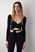 Fitted, long-sleeved wrap sports crop top with 'V' neckline. Features a tie at the back that can be tied either at the hem of the top or wrapped around the waist for a different style. This versatile top is perfect for daily workouts, yoga sessions, or casual everyday looks! Model wears size S: Height: 1,77cm, Bust: 86cm, Waist: 60cm, Hips: 90cm.