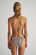 Zebra printed low rise bikini slip. Ties at sides. Moderate back coverage. Combine it with its bikini top 25801165 for a total look.