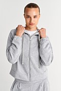 Μονόχρωμη βαμβακερή φούτερ ζακέτα με διακοσμητικό σιρίτι σε μπεζ χρώμα για αντίθεση. Διαθέτει κουκούλα με ρυθμιζόμενο κορδόνι, μακριά μανίκια με λάστιχο στους καρπούς και κλείσιμο μπροστά με φερμουάρ. Η εφαρμογή της είναι χαλαρή και άνετη. Για τέλειο look, συνδύασε την με το παντελόνι 26811060. Το μοντέλο φοράει μέγεθος S: Ύψος: 1,75 εκ., Στήθος: 80 εκ., Μέση: 60 εκ., Περιφέρεια: 90 εκ.