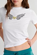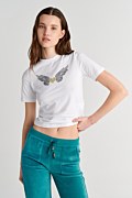 Μονόχρωμη, βαμβακερή κοντομάνικη μπλούζα με στρογγυλή λαιμόκοψη και στρας στο μπροστινό μέρος. Κανονική εφαρμογή. Συνδυάζεται με όλα τα casual ρούχα σου για να τη φοράς από το πρωί έως το βράδυ! Το μοντέλο φοράει μέγεθος S: Ύψος: 1,78 εκ., Στήθος: 81 εκ., Μέση: 61 εκ., Περιφέρεια: 89 εκ.