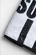 Βαμβακερή πετσέτα θαλάσσης με λογοτυπημένο σχέδιο στο μπροστινό μέρος. Διαθέτει κάθετες ρίγες. Το μήκος της είναι 180 εκ. και το πλάτος 100 εκ.