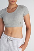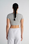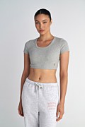 Μονόχρωμο ελαστικό βαμβακερό ριμπ crop τοπ. Διαθέτει στρογγυλή λαιμόκοψη και κοντό μανίκι. Κοντό σε μήκος. Το μοντέλο φοράει μέγεθος S: Ύψος: 1,76 εκ., Στήθος: 85 εκ., Μέση: 61 εκ., Περιφέρεια: 91 εκ.