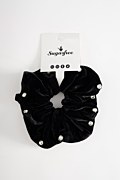 Βελουτέ scrunchies για τα μαλλιά, διακοσμημένο με λαμπερά στρας που προσθέτουν μια αίσθηση λάμψης και πολυτέλειας. Ιδανικό για βραδινές ή πιο επίσημες εμφανίσεις.