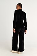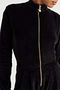 Βελουτέ ολόσωμη μακριά φόρμα με όρθιο γιακά και φαρδιά μπατζάκια. Κλείσιμο στο μπροστινό μέρος με φερμουάρ με επιχρυσωμένο λογότυπο. Κανονική εφαρμογή. Κομψή και μοντέρνα φόρμα, ιδανική για τις καθημερινές σου εμφανίσεις. Το μοντέλο φοράει μέγεθος S: Ύψος: 1,75 εκ., Στήθος: 82 εκ., Μέση: 65 εκ., Περιφέρεια: 96 εκ.