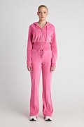 Ψηλόμεσο βελουτέ παντελόνι με μπροστινή διακοσμητική ραφή σε στυλ καμπάνας. Διαθέτει πλαϊνές τσέπες και λάστιχο με ρυθμιζόμενο κορδόνι στη μέση με τα διακοσμητικά λογότυπα. Η εφαρμογή του είναι άνετη. Συνδύασέ το με την κοντή ζακέτα 26813073 και σίγουρα θα εντυπωσιάσεις με το τέλειο look σου. Το μοντέλο φοράει μέγεθος S: Ύψος: 1,78 εκ., Στήθος: 88 εκ., Μέση: 63 εκ., Περιφέρεια: 91 εκ.
