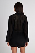 Διάφανη κρουαζέ μονόχρωμη πουκαμίσα/καφτάνι με ασορτί ζώνη που δένει στη μέση. Διαθέτει μακριά μανίκια και 'V' λαιμόκοψη. Η γραμμή της είναι κανονική και άνετη. Συνδυάστε το με το σορτς 25808743 για εντυπωσιακές καλοκαιρινές εμφανίσεις.