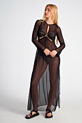 Μακρύ φόρεμα/καφτάνι από αεράτο διάφανο ύφασμα. Διαθέτει στρογγυλή λαιμόκοψη, μεταλλικό στρογγυλό αξεσουάρ στο μπροστινό μέρος, ανοίγματα και μακριά μανίκια. Κλείσιμο με κορδόνι που δένει πίσω από το λαιμό και διαθέτει σκίσιμο στα πλάγια. Κανονική εφαρμογή. Ιδανικό φόρεμα για τις καλοκαιρινές σου εμφανίσεις, για να το φοράς από το πρωί έως το βράδυ, προσφέροντας στυλ και άνεση σε κάθε περίσταση! Το μοντέλο φοράει μέγεθος S: Ύψος: 1,75 εκ., Στήθος: 84 εκ., Μέση: 62 εκ., Περιφέρεια: 90 εκ.