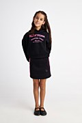 Δίχρωμη, παιδική βαμβακερή μίνι φούστα σε εβαζέ γραμμή με απαλό φλις ύφασμα στο εσωτερικό μέρος. Διαθέτει λάστιχο στη μέση για σταθερή εφαρμογή, patch τσέπη και αστραφτερά στρας σε σχήμα καρδιά στο μπροστινό μέρος. Μια υπέροχη φούστα για να έχουν το τέλειo look τα κορίτσια μας κάθε φορά που την φοράνε! Το μοντέλο φοράει μέγεθος 8: Ύψος: 1,27 εκ.
