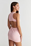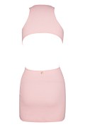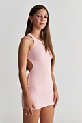 Μονόχρωμο εφηβικό, βαμβακερό ριμπ ελαστικό φόρεμα. Διαθέτει στρογγυλή κλειστή λαιμόκοψη και ανοιχτή πλάτη. Στενή γραμμή. Κοντό σε μήκος. Το μοντέλο φοράει μέγεθος PXS, ύψος: 1,64 εκ.