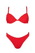 Μονόχρωμο, εφηβικό μαγιό μπικίνι σετ από ύφασμα ριμπ. Διαθέτει ενίσχυση στο στήθος με μπανέλα, ρυθμιζόμενες τιράντες και κούμπωμα στην πλάτη. Σλιπ με μικρή πίσω κάλυψη.