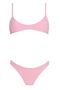 Μονόχρωμο, εφηβικό ριμπ μαγιό μπικίνι σετ. Αποτελείται από μπικίνι τοπ με ρυθμιζόμενες τιράντες, μικρή ενίσχυση στο στήθος με αφαιρούμενα pads και κούμπωμα στην πλάτη. Μαγιό μπικίνι σλιπ με κανονική πίσω κάλυψη.