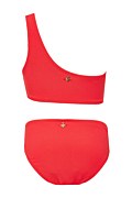 Εφηβικό μονόχρωμο ριμπ σετ μαγιό με έναν ώμο. Μπικίνι crop τοπ χωρίς κούμπωμα και σλιπ με κανονική πίσω κάλυψη.
