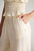 Μονόχρωμη, ψηλόμεση παντελόνα σε φαρδιά γραμμή. Διαθέτει ελαφρύ, αέρινο ύφασμα με εφέ τσαλακωμένης υφής, λάστιχο στη μέση για σταθερή εφαρμογή, κρυφές πλαϊνές τσέπες στη ραφή και iconic Sugarfree λογότυπο στο πλάι. Η γραμμή της είναι φαρδιά και άνετη για να τη φοράς όλη την ημέρα. Για τέλειο look συνδύασε την με την μπλούζα 25812170.