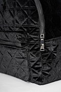 Καπιτονέ βελουτέ σακίδιο πλάτης με λαβή χειρός στην κορυφή. Διαθέτει λογότυπο Sugarfree στο μπροστινό μέρος, ενιαίο αποθηκευτικό χώρο με εσωτερική θήκη με φερμουάρ και κλείσιμο με φερμουάρ στο πάνω μέρος. Εξωτερική μεγάλη τσέπη στο κέντρο που κλείνει με φερμουάρ. Στην πλάτη υπάρχουν δύο ρυθμιζόμενα λουριά ώμου. Διαστάσεις: Μήκος 14 x Πλάτος 36 x Ύψος 37 εκ.