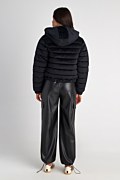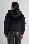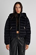 Καπιτονέ φουσκωτό βελουτέ μπουφάν με αποσπώμενη κουκούλα, ιδανικό για τις κρύες μέρες του χειμώνα. Διαθέτει μακριά μανίκια και ανοιγόμενες μπροστινές τσέπες με φερμουάρ. Η αποσπώμενη κουκούλα είναι ένα ιδιαίτερο χαρακτηριστικό του, καθώς προσφέρει ευελιξία ανάλογα με τον καιρό και τις ανάγκες σου. Αφαιρείτε εύκολα με κουμπιά σούστες, εξασφαλίζοντας έτσι περισσότερη άνεση. Κλείσιμο μπροστά με φερμουάρ. Κανονική εφαρμογή. Το μπουφάν αυτό είναι ένα ζεστό και στυλάτο outerwear κομμάτι, που δεν πρέπει να λείπει από την γκαρνταρόμπα σου!