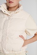 Κοντό καπιτονέ φουσκωτό γιλέκο της Sugarfree που συνδυάζει τη μοντέρνα αισθητική με την άνεση! Διαθέτει όρθιο γιακά, πλαϊνές τσέπες και κλείσιμο στο μπροστινό μέρος με φερμουάρ και κρυφά κουμπιά σούστες. Η γραμμή του είναι κανονική. Μπορεί να συνδυαστεί με κάθε σου outfit και να ολοκληρώσει την εμφάνιση σου με τον πιο fashionable τρόπο. Το μοντέλο φοράει μέγεθος S: Ύψος: 1,78 εκ., Στήθος: 88 εκ., Μέση: 63 εκ., Περιφέρεια: 91 εκ.