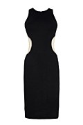 Μονόχρωμο, εφαρμοστό αμάνικο μίντι φόρεμα της εταιρείας KENDALL + KYLIE ειδικά σχεδιασμένο για να αναδεικνύει και να τονίζει με θηλυκότητα τις καμπύλες σου. Διαθέτει στρογγυλή κλειστή λαιμόκοψη και ανοίγματα με διχτυωτό ύφασμα στα πλάγια της μέσης. Κλείσιμο στο πίσω μέρος με κρυφό φερμουάρ στη ραφή.