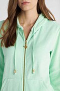 Απόλυτη άνεση και κομψότητα για όλες τις ώρες! Η κλασική βελουτέ ζακέτα της Sugarfree σε υπέροχα χρώματα, με τις μπροστινές καγκουρό τσέπες και το ανοιγόμενο φερμουάρ με το επιχρυσωμένο λογότυπο, θα γίνει η τέλεια παρέα σου για όλες τις ώρες. Διαθέτει κουκούλα με ρυθμιζόμενο κορδόνι και λάστιχο στην μέση και στα μανίκια. Η εφαρμογή της είναι άνετη. Για τέλειο outfit συνδύασέ την με το παντελόνι 26811000. Το μοντέλο φοράει μέγεθος S: Ύψος: 1,77 εκ., Στήθος: 83 εκ., Μέση: 62 εκ., Περιφέρεια: 89 εκ.