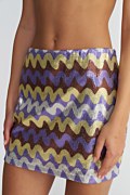Μίνι φούστα με πολύχρωμο τύπωμα, διακοσμημένη με αστραφτερές παγιέτες σε όλη την επιφάνεια του υφάσματος. Διαθέτει εσωτερικό λάστιχο για σταθερή και άνετη εφαρμογή. Το μοντέλο φοράει μέγεθος S: Ύψος: 1,73 εκ., Στήθος: 81 εκ., Μέση: 60 εκ., Περιφέρεια: 89 εκ.