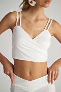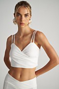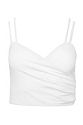 Μονόχρωμη κοντή κρουαζέ μπλούζα σε στενή γραμμή με ντραπέ λεπτομέρεια στο μπροστινό μέρος. Διαθέτει 'V' ντεκολτέ και διπλές λεπτές τιράντες. Κοντή σε μήκος.