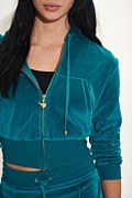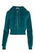 Μονόχρωμη κοντή βελουτέ ζακέτα με φαρδύ λάστιχο στη μέση. Διαθέτει κουκούλα με ρυθμιζόμενο κορδόνι, μπροστινές καγκουρό τσέπες και ανοιγόμενο φερμουάρ με επιχρυσωμένο λογότυπο. Η εφαρμογή της είναι άνετη και αν θες τέλειο στυλ συνδύασέ την με το παντελόνι 25811073. Το μοντέλο φοράει μέγεθος S: Ύψος: 1,75 εκ., Στήθος: 81 εκ., Μέση: 67 εκ., Περιφέρεια: 89 εκ.